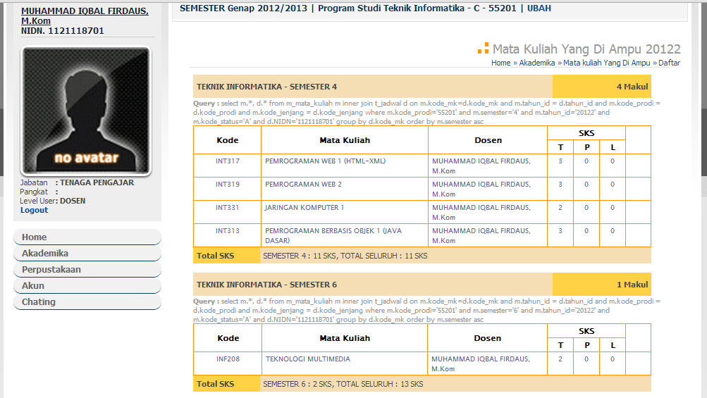 2.2. Menu "Mata Kuliah yg diampu"