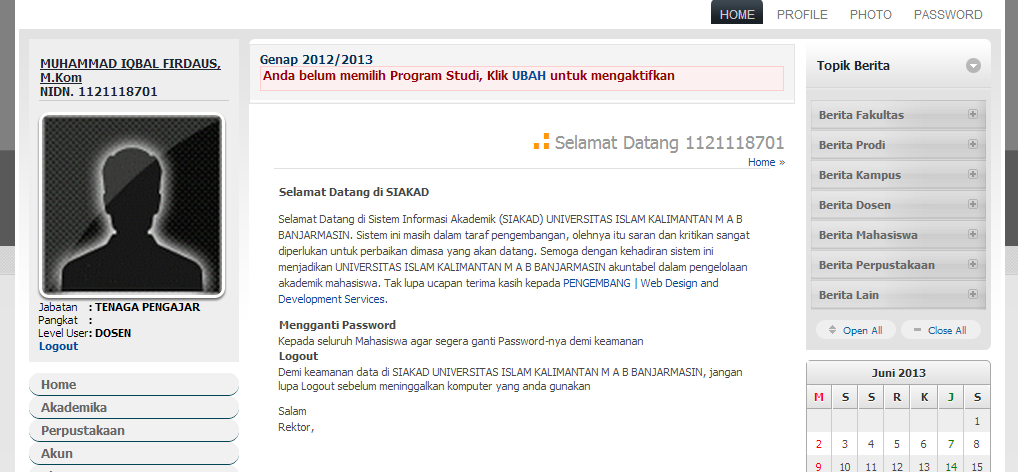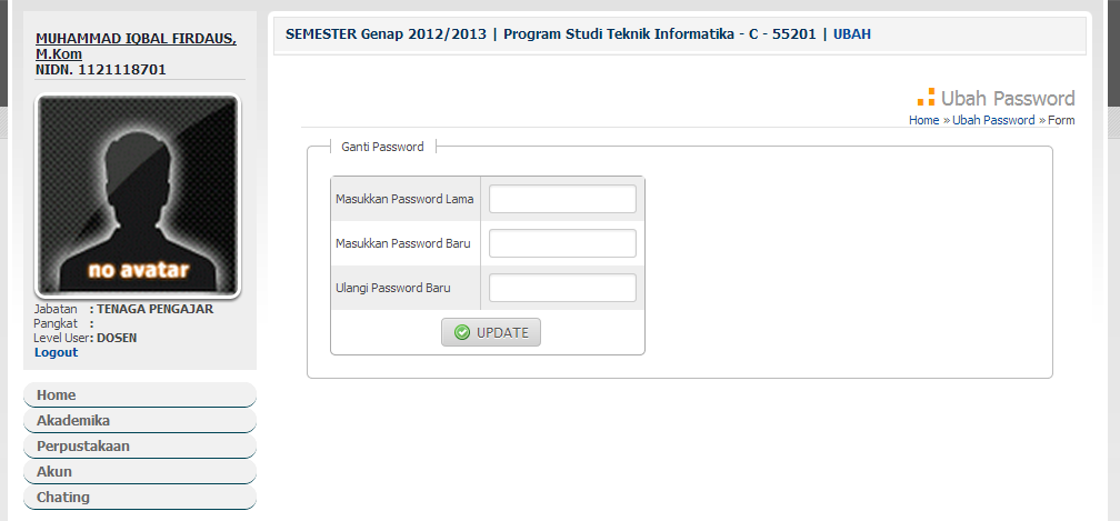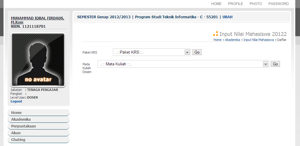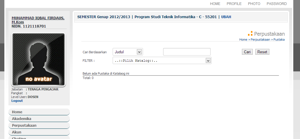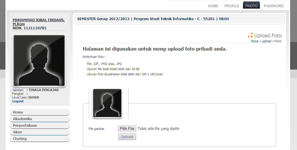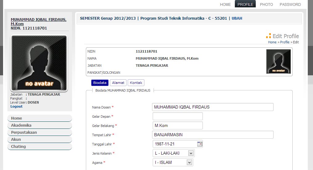 1. Pilih menu Akun >> Edit Photo untuk merubah photo dosen