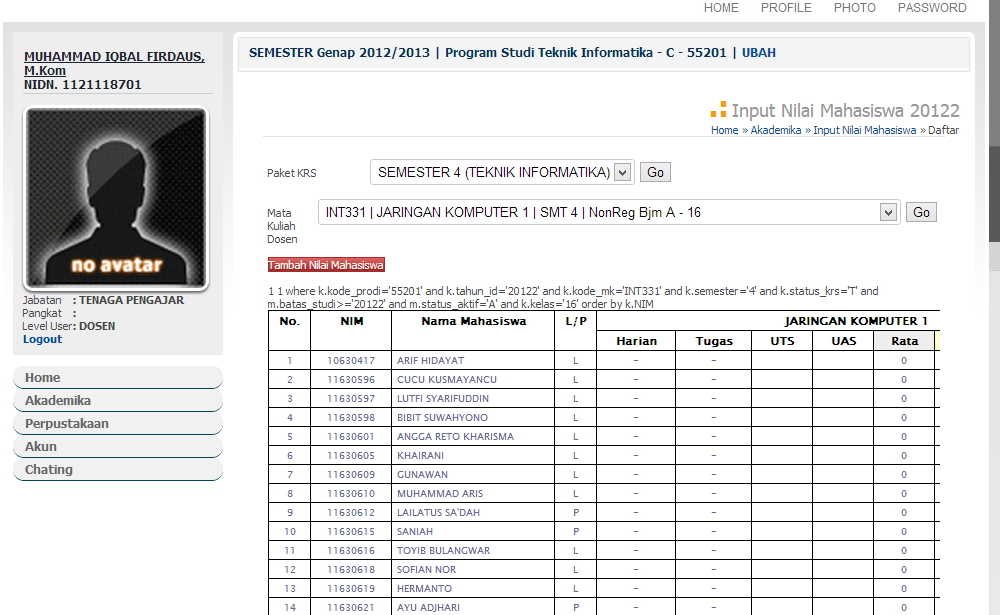 INPUT NILAI MAHASISWA