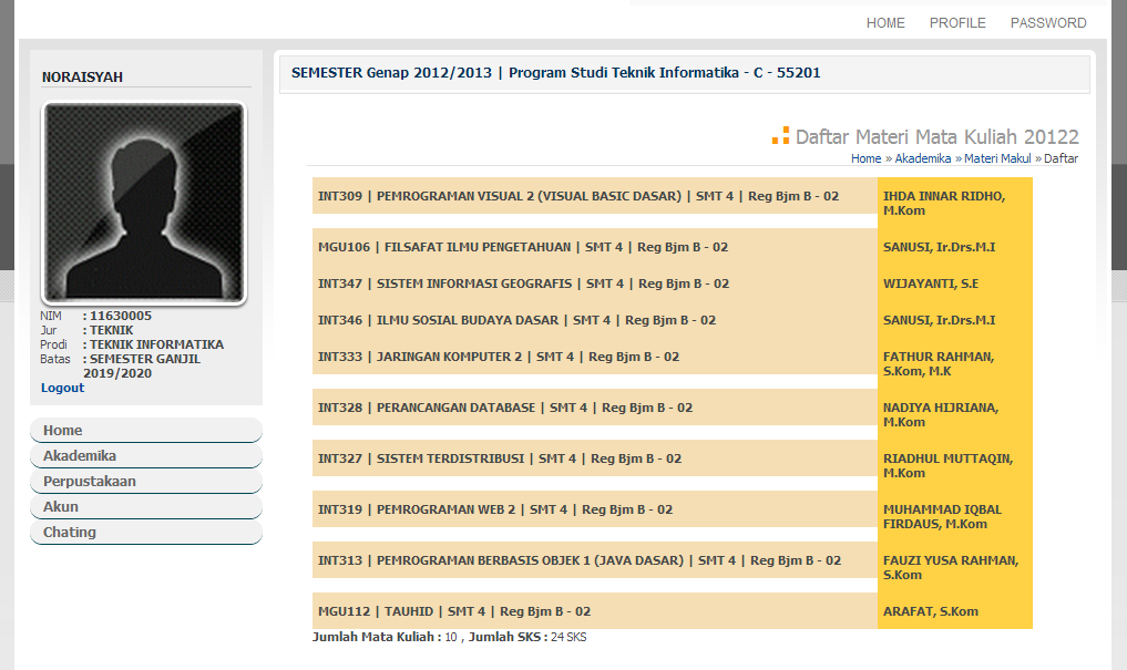 1. Pilih menu Akademika >> "Materi Makul" melihat bahan ajar digital mata kuliah.