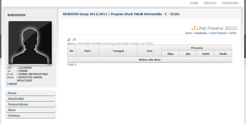 1. Pilih menu Akademika >> Lihat Presensi untuk melihat dan mencetak presensi kehadiran mahasiswa