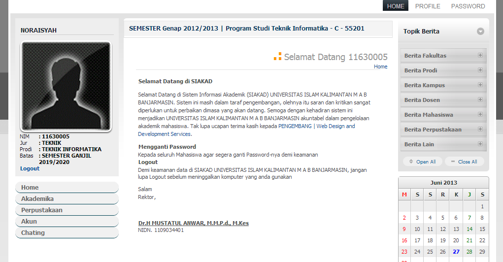 Akses Layanan Sistem Informasi Akademik dengan mengakses URL