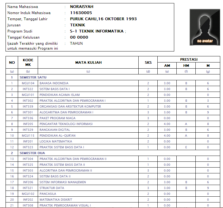 Anda dapat melihat dan/atau mencatak KHS yg anda ambil pada semester bersangkutan