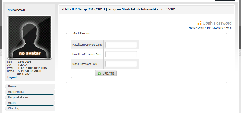1. Pilih menu Akun >> Edit Profile untuk merubah profil mahasiswa