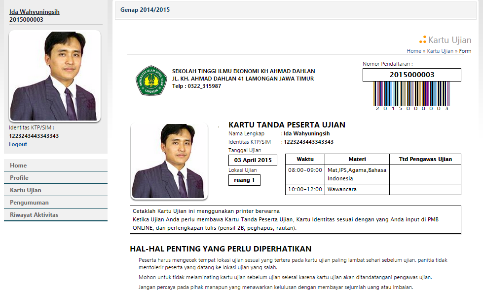 Cetak Kartu Ujian