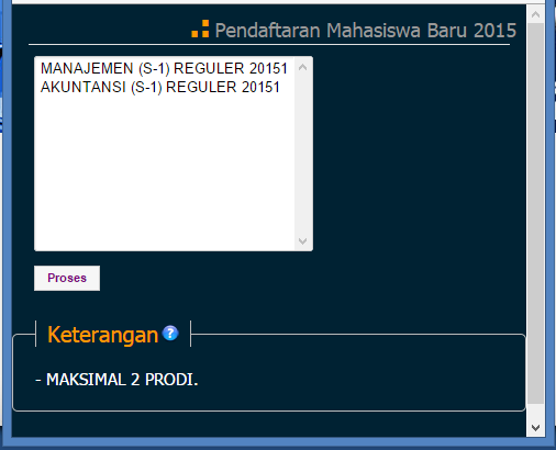 Pilih Prodi yang diinginkan kemudian klik tombol Proses.