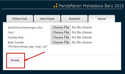 Jika semua data telah terisi maka klik tombol Proses