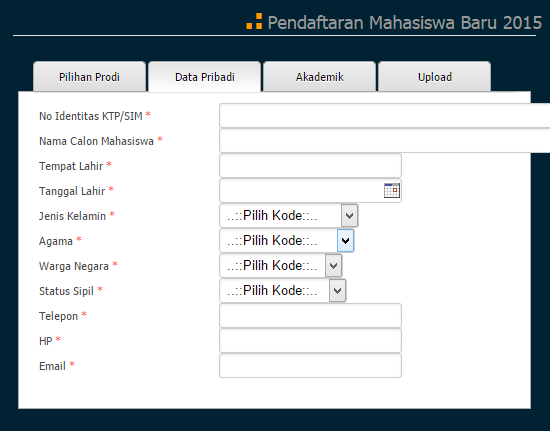 Lengkapi semua form PMB. Keterangan :